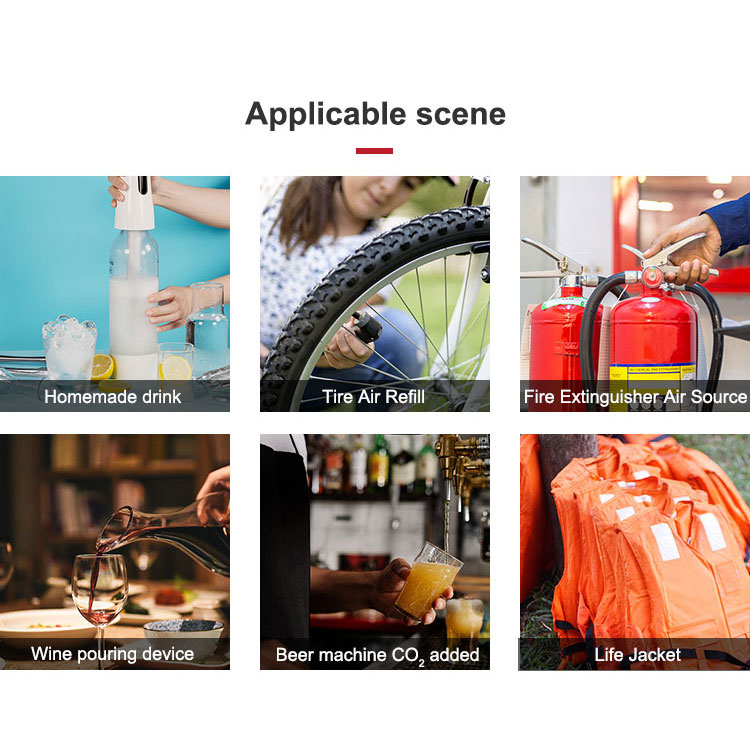- Kartrij gred makanan CO2 16G telah diuji untuk keselamatan letupan haba dan 100% tidak boleh meletup semasa digunakan.