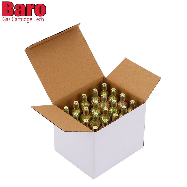 - Kartrij 16G CO2 gred makanan serasi dengan semua dispenser bir 16 g, setiap kotak mengandungi 16 gram karbon dioksida gred makanan tulen, menjadikannya pilihan terbaik untuk pengeluaran bir.