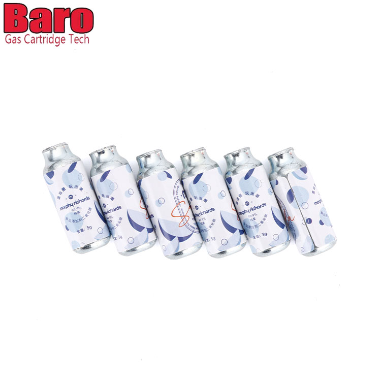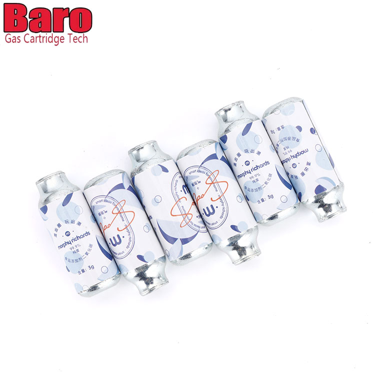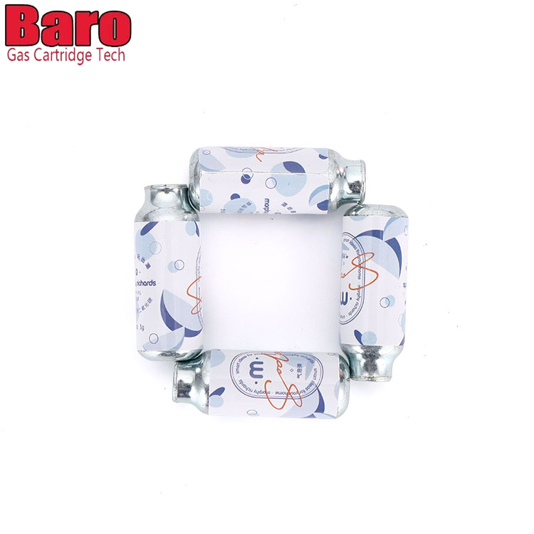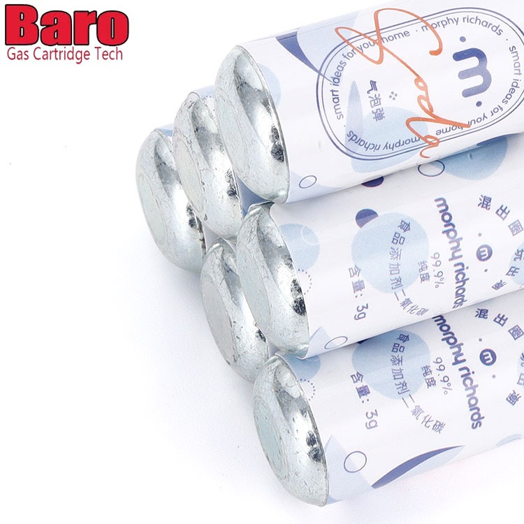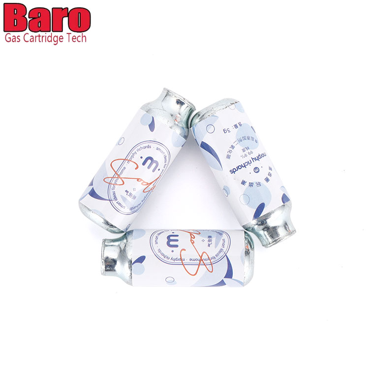 Silinder Karbon Dioksida Gred Makanan 3g yang sempurna akan digunakan untuk membuat soda. Kartrij CO2 adalah 100% selamat untuk makanan dan minuman. Semua silinder CO2 yang kami hasilkan adalah gred makanan. Setiap silinder menggunakan karbon dioksida gred makanan, iaitu 99.9% tulen.