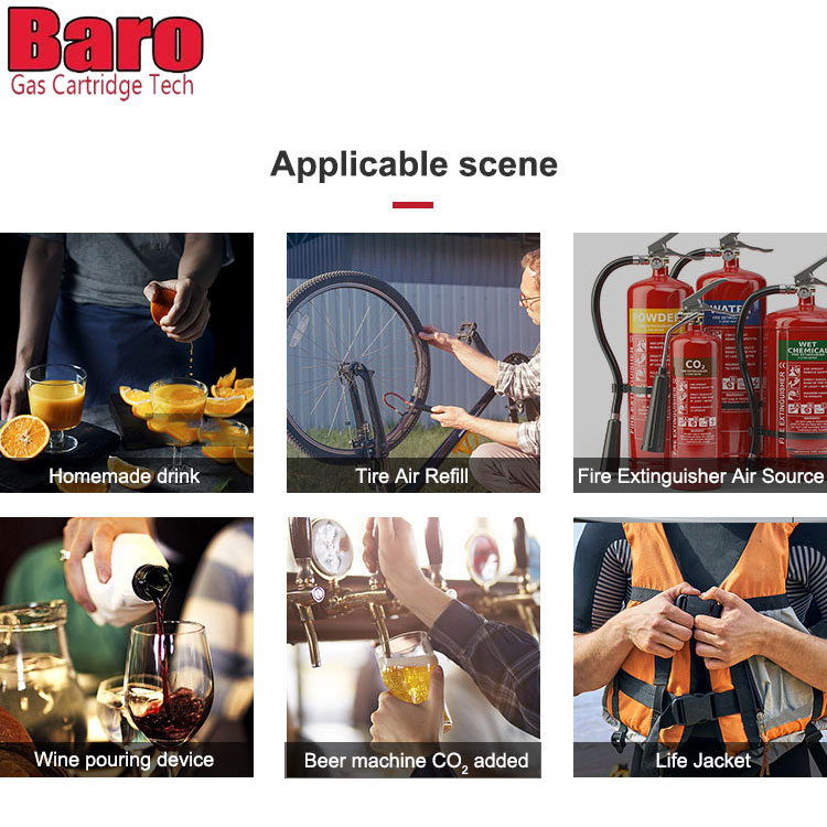 Ambil perhatian bahawa beberapa silinder CO2 berkualiti rendah, masalah termasuk: isu keserasian teknikal (isipadu gas, benang, dsb.) berbanding silinder Baro kualiti buruk (ketat, kakisan, mudah pecah, dll.) kehilangan pensijilan dan waranti CE tidak menjamin operasi beg udara itu.