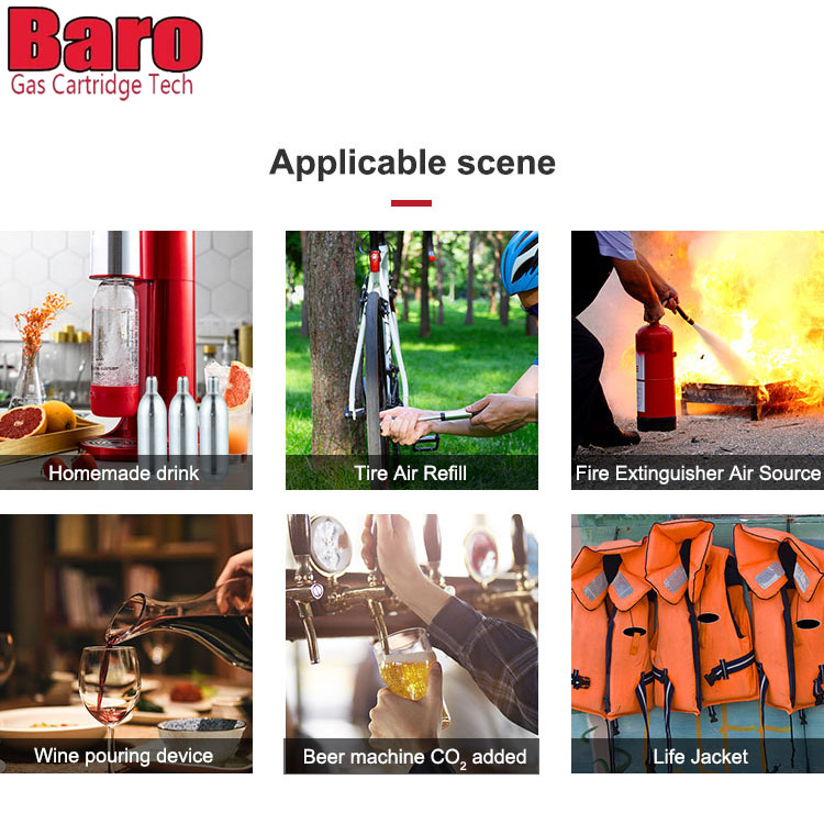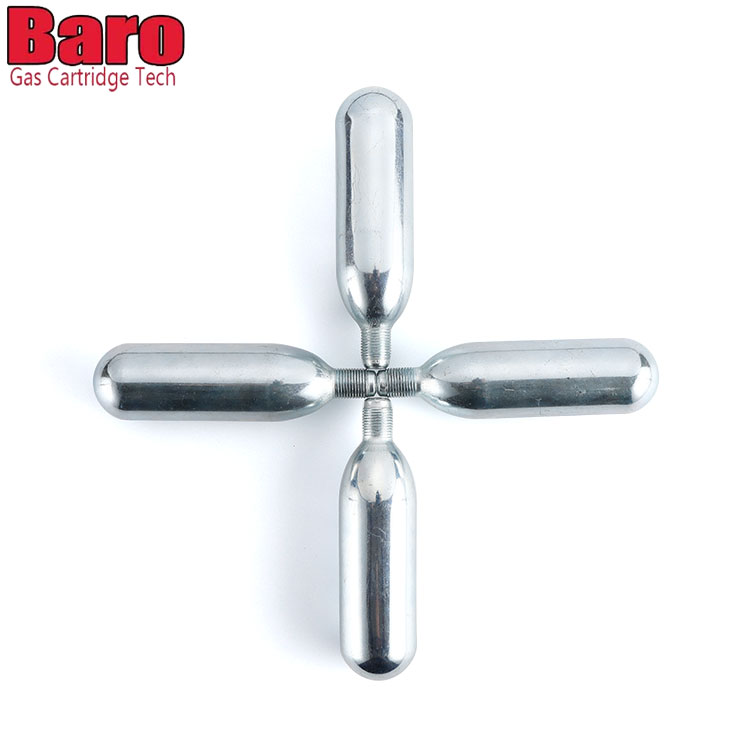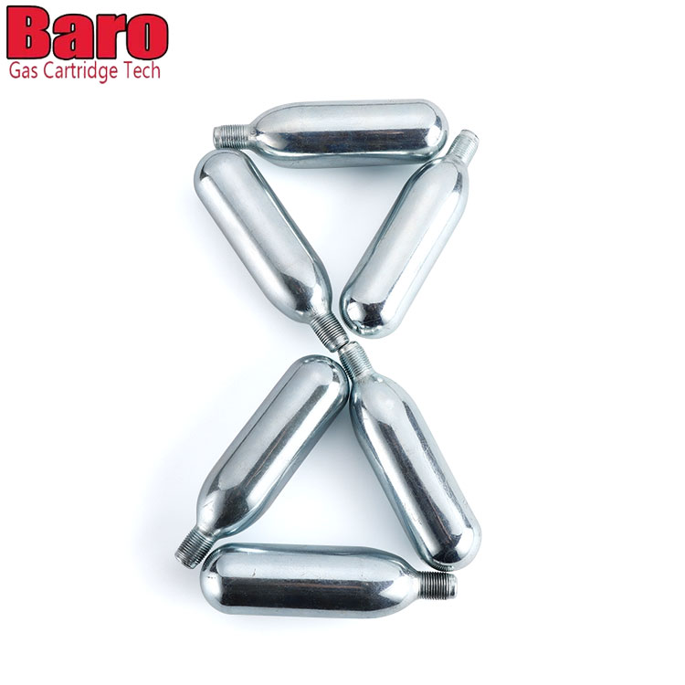 Kartrij CO2 Baro 74g untuk Pendispensan Bir menggunakan sistem penutup/penutupan untuk memastikan tiada kebocoran gas dan jangka hayat yang panjang. Penapisan tiga kali ganda, rasa dan keselamatan. tidak boleh diisi semula, sekali guna. Kartrij CO2 diperbuat daripada 100% keluli tahan karat yang boleh dikitar semula. Dihasilkan mengikut piawaian tertinggi, cengkerang kami bebas daripada serpihan logam dan tiada sisa minyak, jadi ia tidak akan memberikan air berkarbonat anda bau atau rasa berminyak.